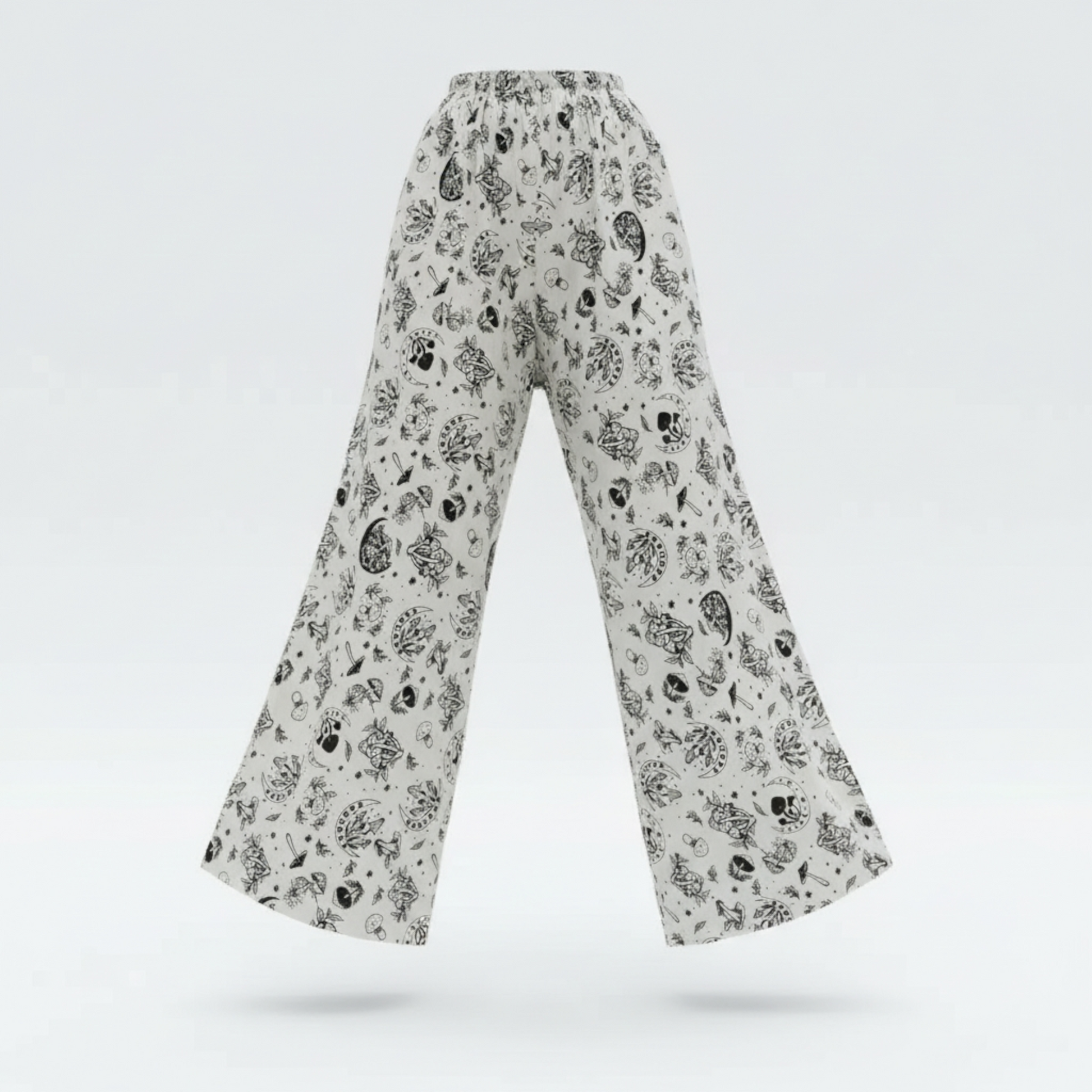 Made from lightweight organic cotton, these flowy wide-leg pants are perfect for bohemian summers, music festivals, lounging, or year-round layering. The celestial and mushroom-inspired print adds a dreamy, earthy vibe that feels both whimsical and effortlessly cool.